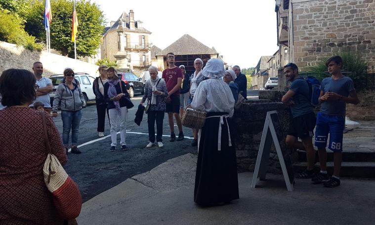 Munie de son journal du jour et des quelques potins du coin, cette commère vous embarque dans les rues et anciens chemins de Treignac et vous livre les actualités du moment : le retour du marquis, ses mésaventures avec quelques colporteurs ou encore des guérissons miraculeuses, au détour d’une coursière vous risquez même de « finir d’entrer » dans une maison treignacoise…