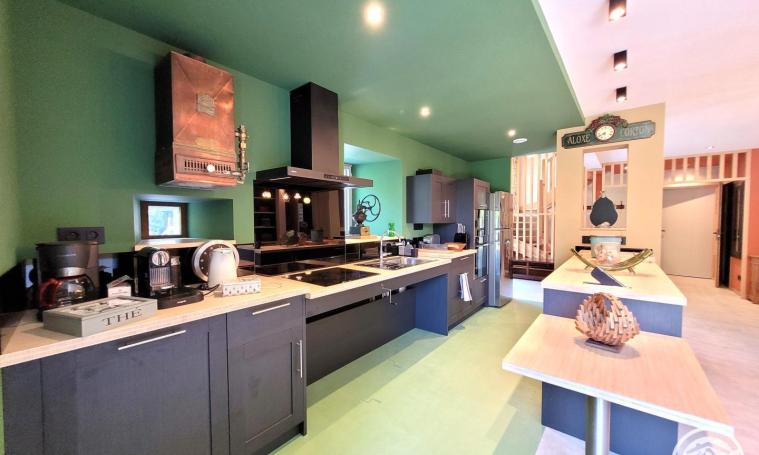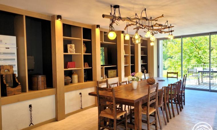 Le gîte se compose: RDC : - Cuisine aménagée et équipée - Salle à manger avec accès direct à la terrasse pour de bons moments en famille ou entre amis - Chambre accessible aux personnes à mobilité réduite avec 1 lit en 160x200 + salle d'eau PMR - WC indépendant accessible PMR ETAGE : - Salon cathédrale avec balcon et vue panoramique - Chambre Cabane avec 2 lits de 140x190 + 1 lit de 90 + salle d'eau - Chambre Baroque avec lit de 140x190 - Chambre Art Déco avec lit de 140x190 - Grande salle de bain (baignoire, douche et WC) - WC indépendant MEZZANINE (accès escalier pas japonais) : - Chambre avec 1 lit 180x200 (séparable en 2 lits de 90) + lit de 90x190 EXTERIEURS : - Belles terrasses avec vue sur la nature environnante - Espace brasero pour soirées chaleureuses - Bain nordique pour détente en toute saison - Piscine privée chauffée (nouveauté saison 2026, de fin mai à début octobre) - Jardin paysager - Local fermé pour vélos, matériel pêche... - Parking dans propriété avec place PMR