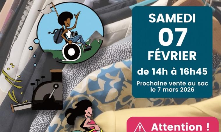 La boutique solidaire "So'Frip" de APF France handicap propose sa traditionnelle vente au sac de ses vêtements à 5€ le sac de 30 litres fermé.